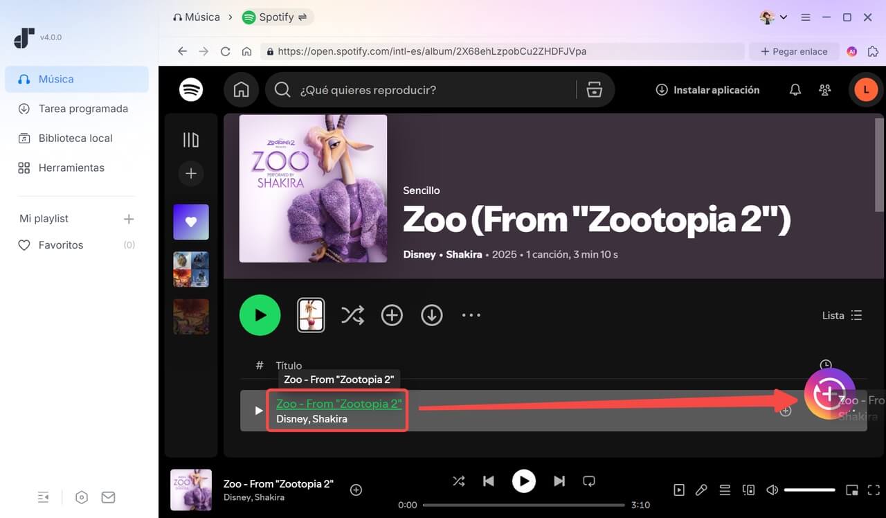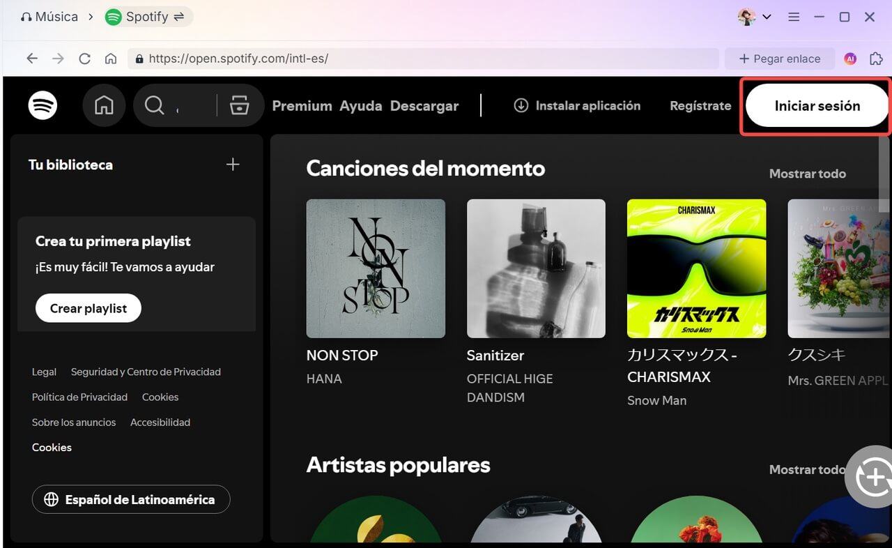 2. Abre el programa y accede a tu cuenta de Spotify desde el reproductor integrado.