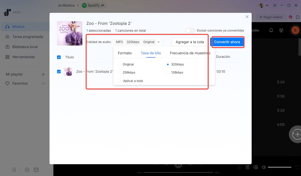4. Elige el formato MP3 y ajusta la calidad a 320 kbps si lo deseas.