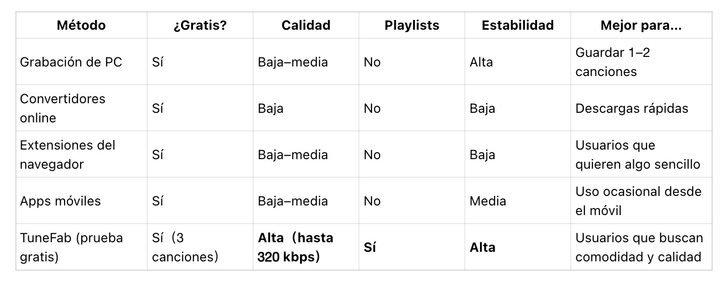 - Si buscas calidad y una solución estable, TuneFab es la opción más completa, y puedes probarlo gratis para ver si encaja con lo que necesitas.