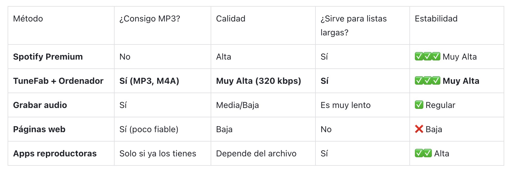 - La opción más completa: Usar un programa como TuneFab en tu PC o Mac. Esta es la mejor solución si lo que buscas es tener tus canciones en formato MP3, para poder guardarlas, usarlas en cualquier reproductor o dispositivo, y no depender de una suscripción.