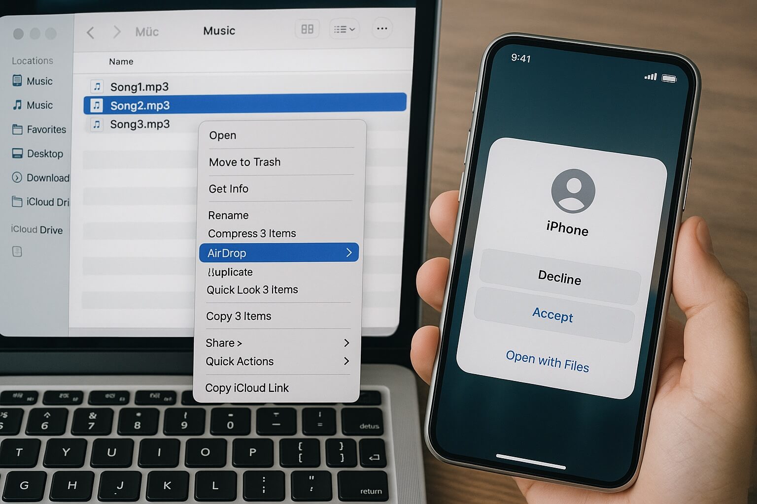 2. Haz clic derecho, elige “Compartir” > “AirDrop” y selecciona tu iPhone.