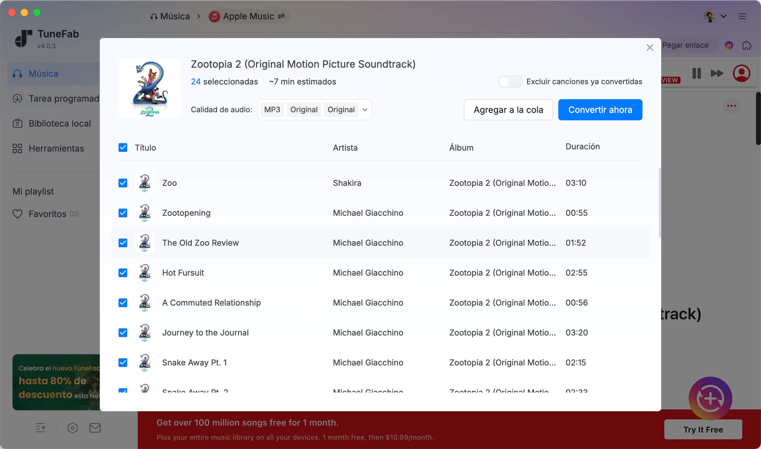 Aunque Apple no permite descargar canciones de forma permanente (son archivos M4P protegidos), existe una solución legal para hacer una "copia de seguridad" de tu biblioteca antes de que expire la prueba: convertir las canciones a formatos abiertos como MP3.